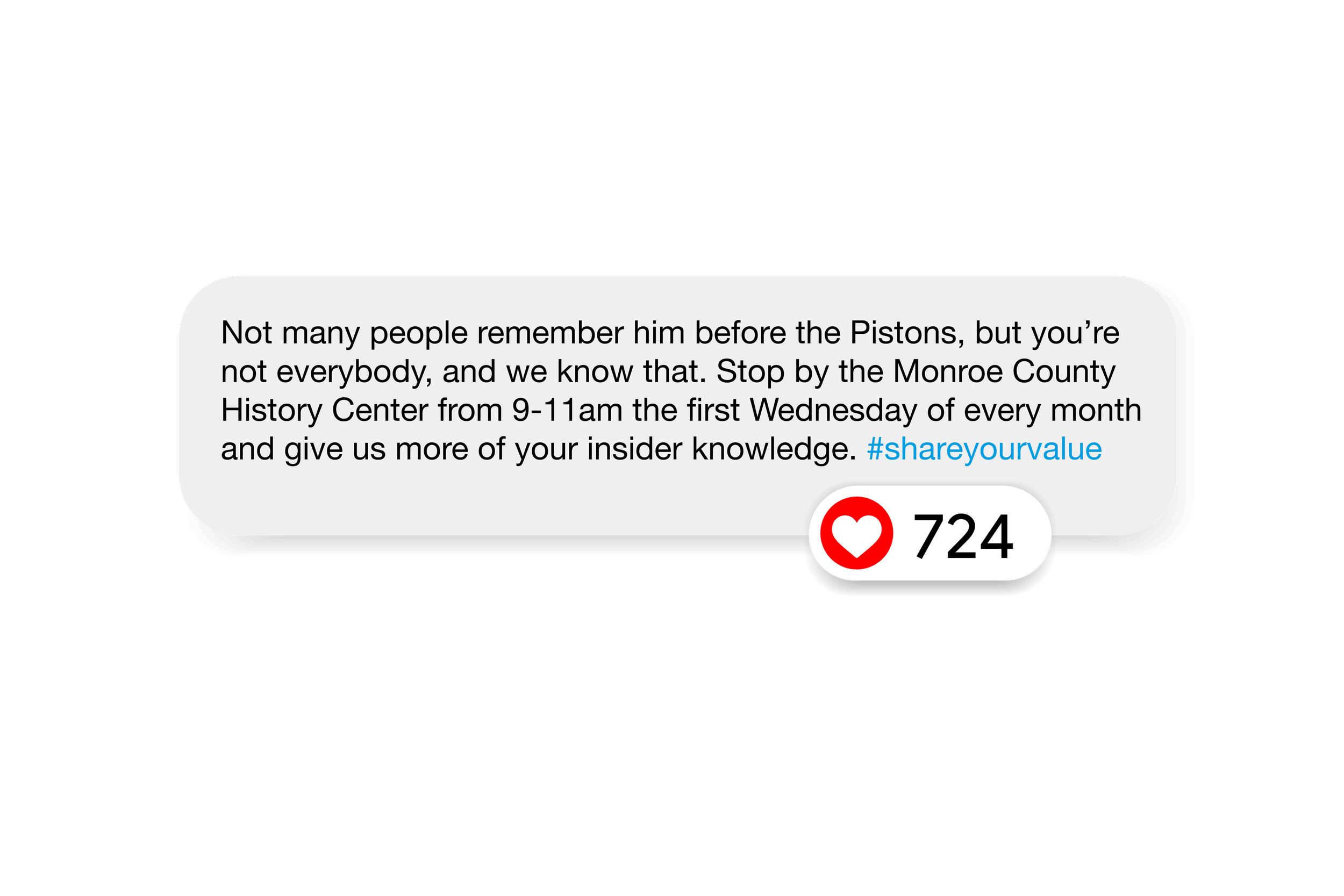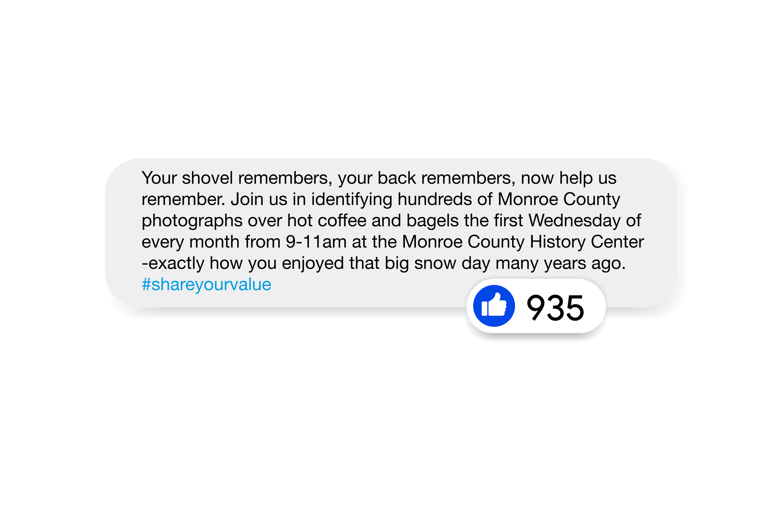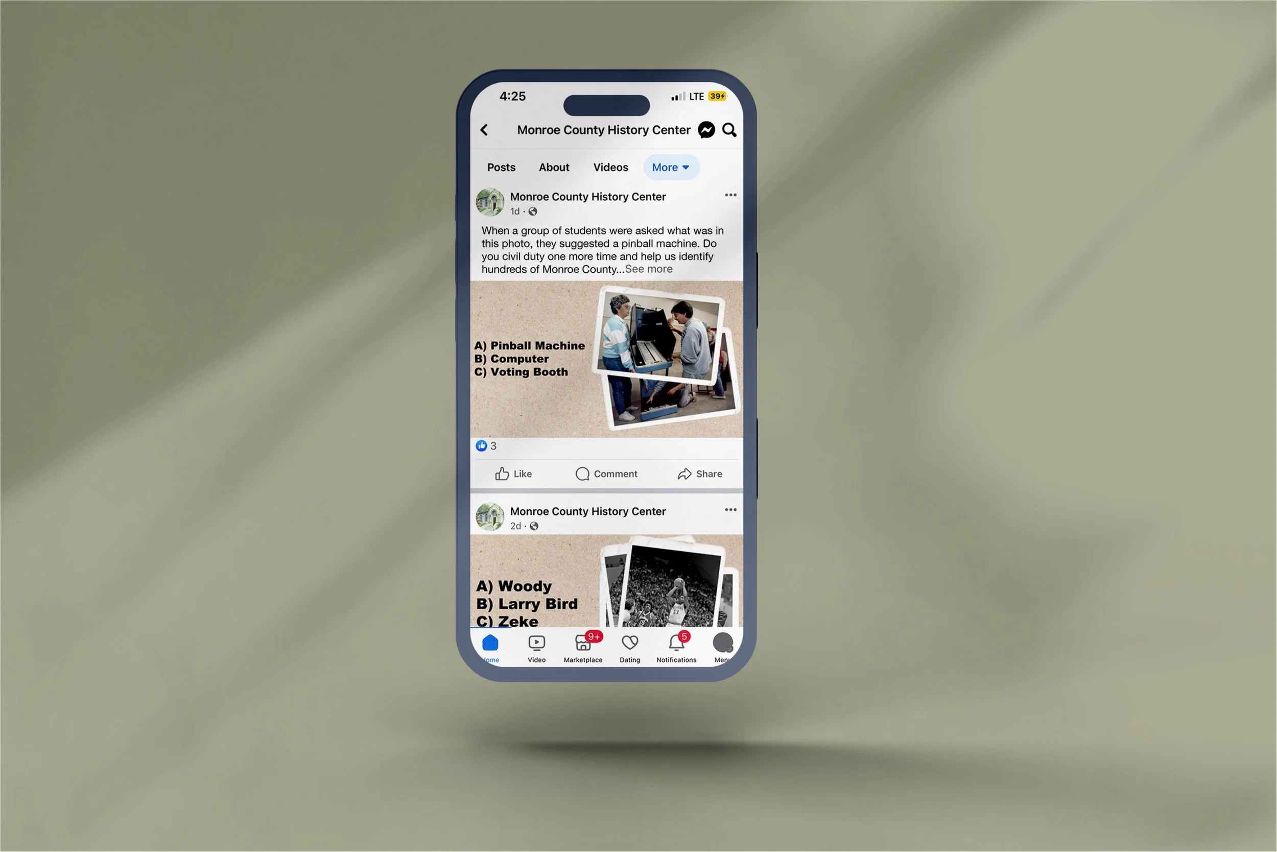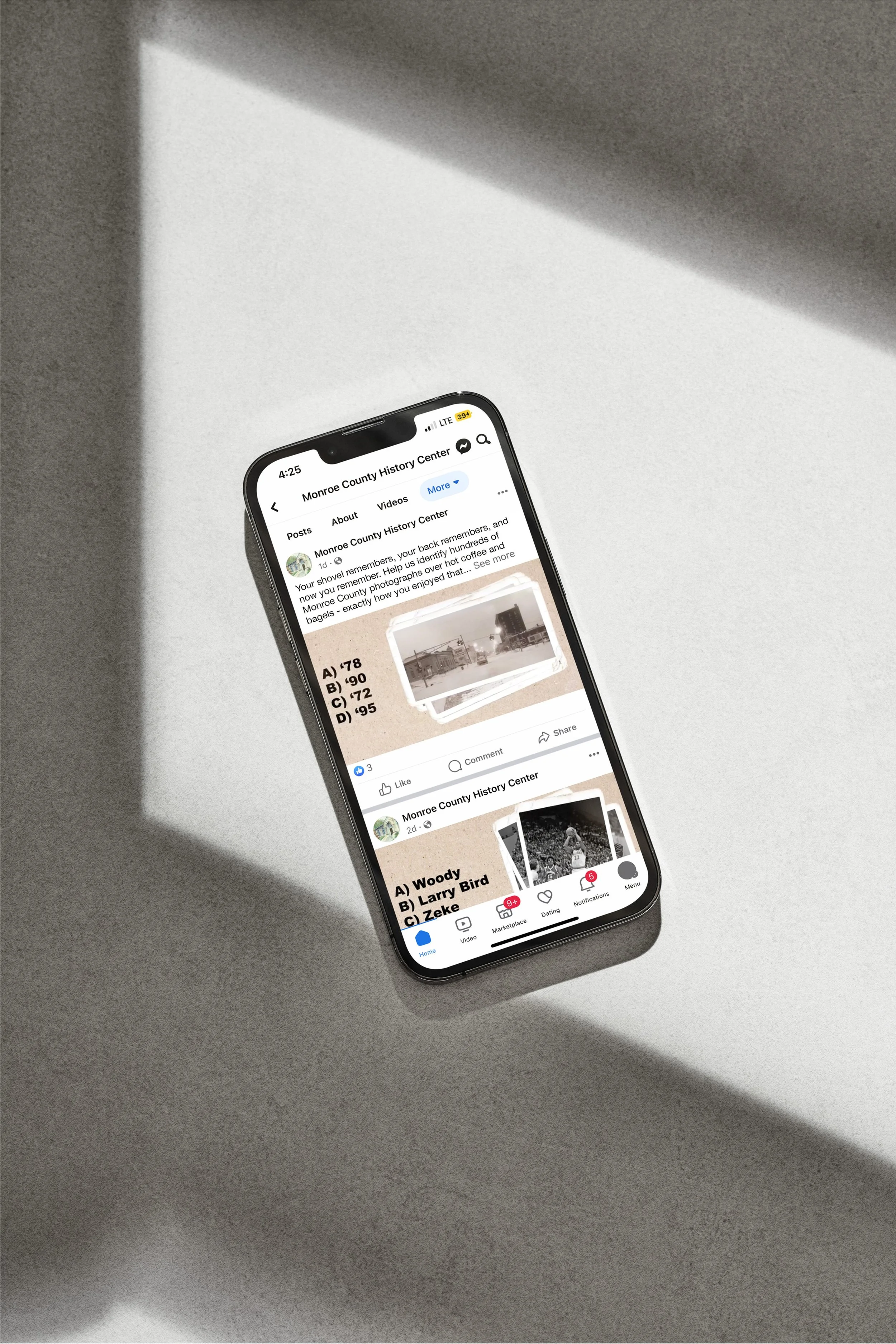Our campaign idea follows a lighthearted and interactive approach, as we try and connect with the target audience through trends and events that happened in Monroe County’s past that only they can remember. We focus on aspects of life such as well-known individuals, natural events, familiar past times, clothing styles, and Monroe County landmarks to filter our target audience and prove that their memories and life experiences are the key to winning our quizzes.
